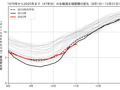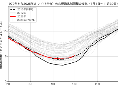 1.北極における2025年8月の海氷状況 北極の海氷域面…
